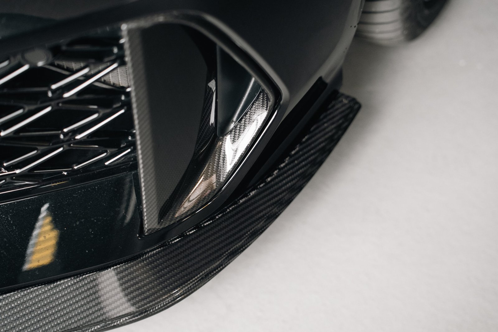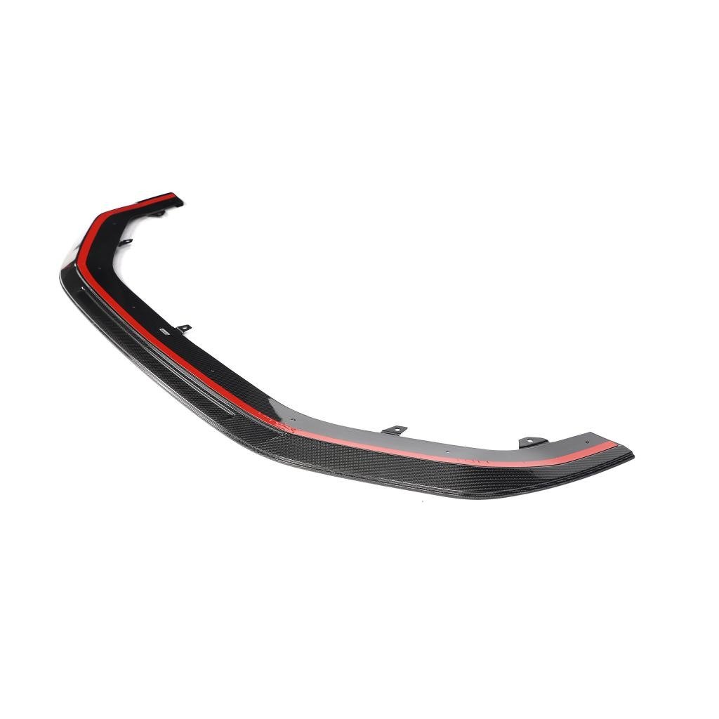 The S1 Pro front splitter features an assertive one-piece design crafted from dry pre-preg carbon fibre, features a flawless weave quality, exceptional strength, and ultra-lightweight construction. Finished in a premium high-gloss clear coat, it delivers a deep, mirror-like finish that accentuates every curve and edge.